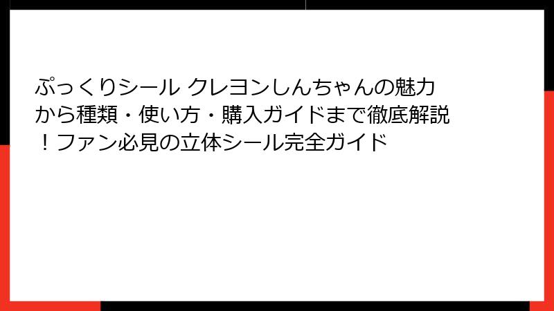 - ぷっくりシール クレヨンしんちゃんまとめ:今すぐ手に入れて楽しもう!ファン必見の最終アドバイス