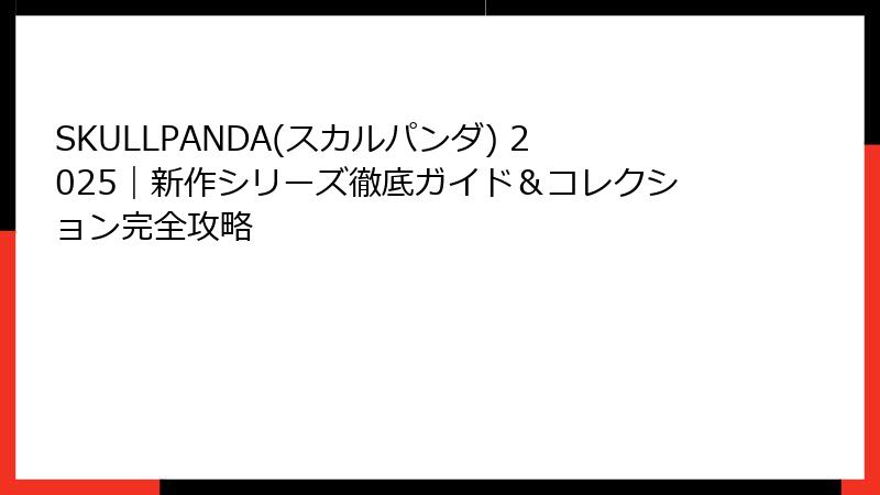 - 2025年SKULLPANDA(スカルパンダ)新作徹底ガイド:おすすめシリーズと詳細レビュー
