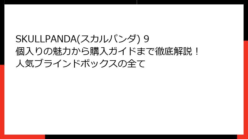今回は、このSKULLPANDA 9個入りの魅力を徹底的に掘り下げていきましょう。
