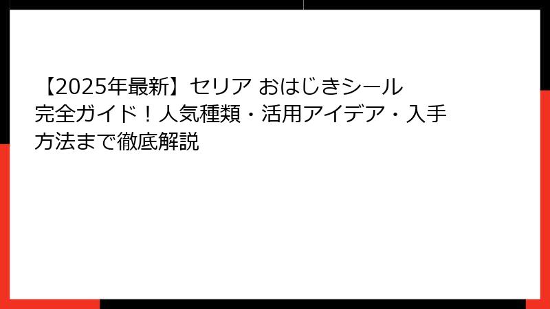 魅力から活用、レビュー、購入ガイドまで、あなたのシールライフをサポートします。