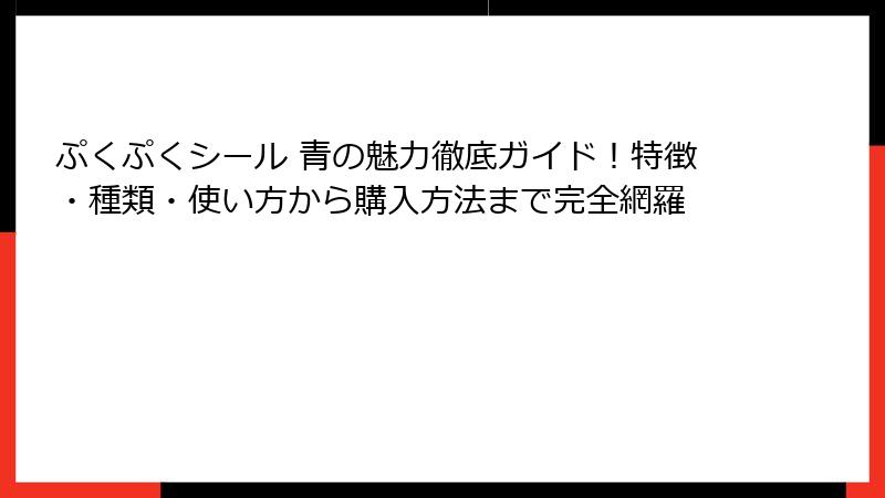 この記事では、ぷくぷくシール 青の基本的な魅力から始め、さまざまな角度からその魅力を深掘りしていきます。