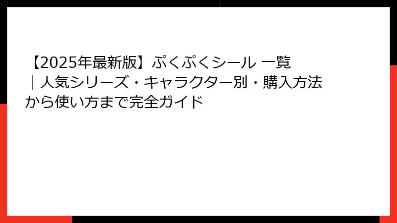 【2025年最新版】ぷくぷくシール 一覧|人気シリーズ・キャラクター別・購入方法から使い方まで完全ガイド