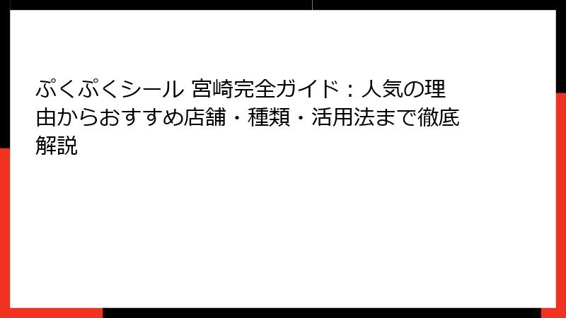 ぷくぷくシール 宮崎完全ガイド:人気の理由からおすすめ店舗・種類・活用法まで徹底解説