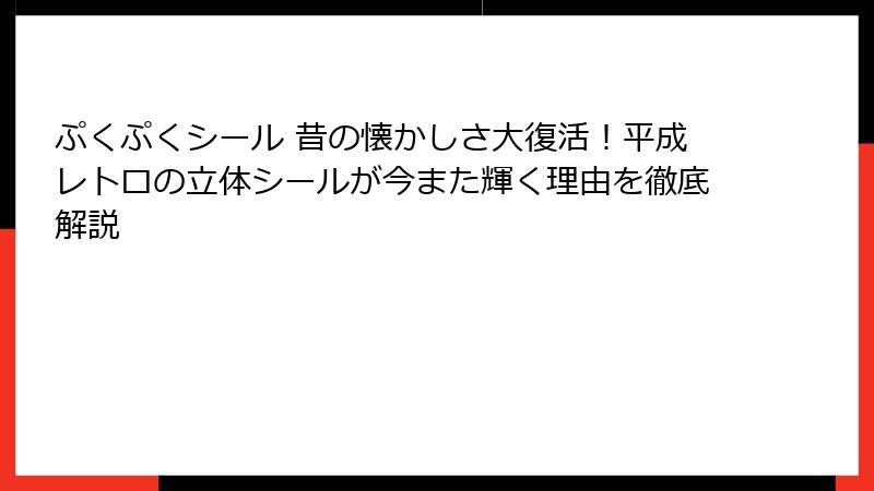 ぷくぷくシール 昔の懐かしい魅力に迫る!平成レトロの定番アイテムを振り返る