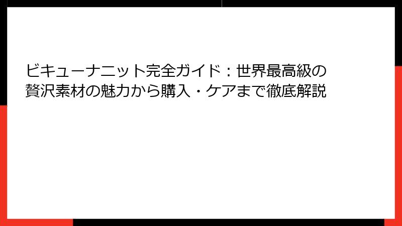 この記事では、ビキューナニットの基本からその魅力までを徹底的に掘り下げていきます。