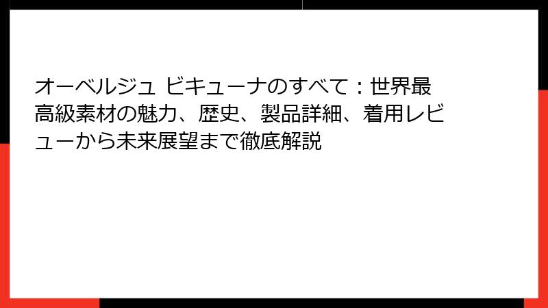 オーベルジュ ビキューナのすべて:世界最高級素材の魅力、歴史、製品詳細、着用レビューから未来展望まで徹底解説