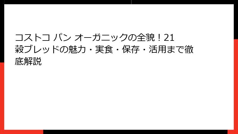 - コストコ パン オーガニックの賢い買い方と保存術!価格・在庫・健康活用Tips