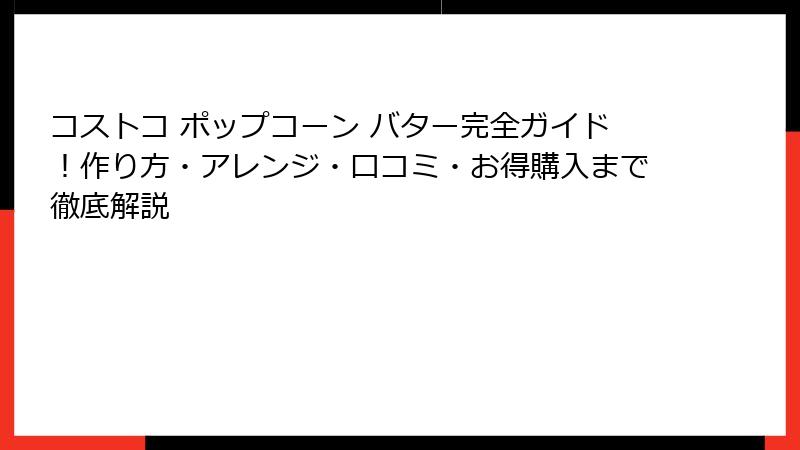 なぜ「コストコ ポップコーン バター」が今、注目されているのか?