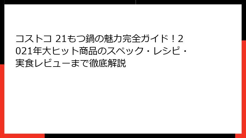 - 実食レビュー!コストコ「21もつ鍋」の味・食感・満足度を本音で評価&ユーザー声まとめ