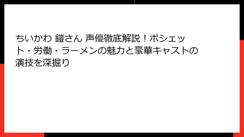 ポシェット、労働、ラーメンの鎧さん、それぞれの魅力と声優の演技を振り返り、共通点・違いを比較し、全体の魅力をまとめました。