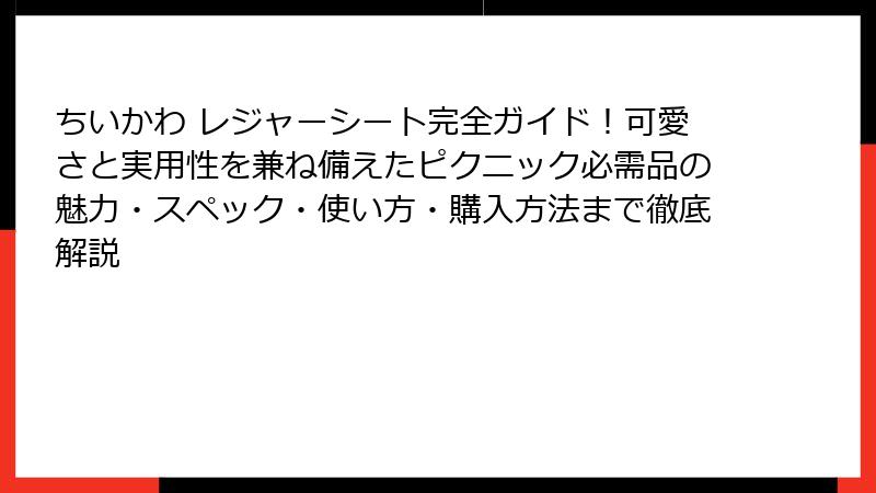 この記事では、ちいかわの魅力から始まり、レジャーシートの詳細なスペック、活用シーン、そして購入ガイドまでを徹底的に掘り下げていきます。