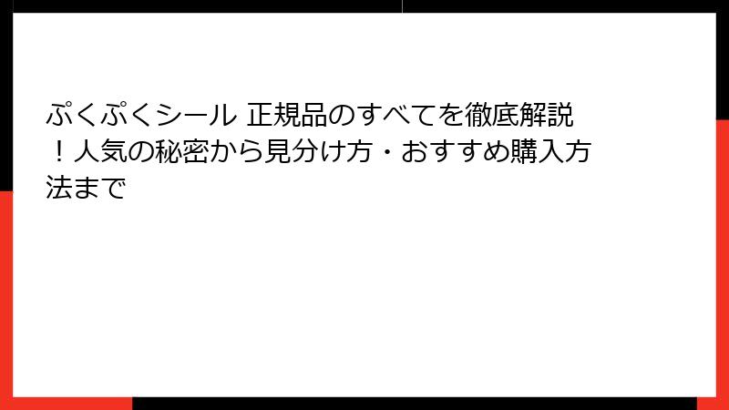 ぷくぷくシール 正規品の入門、まとめガイド。