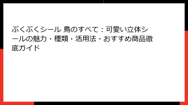 - ぷくぷくシール 鳥の魅力とは? 可愛い立体感が心を掴む理由