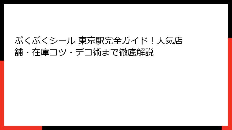 - 東京駅直結!ぷくぷくシールが買えるおすすめ店舗5選と在庫状況
