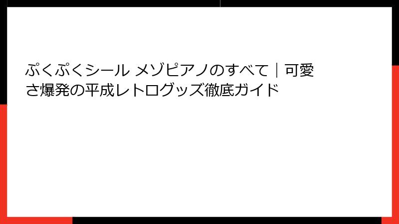 ぷくぷくシール メゾピアノのすべて|可愛さ爆発の平成レトログッズ徹底ガイド