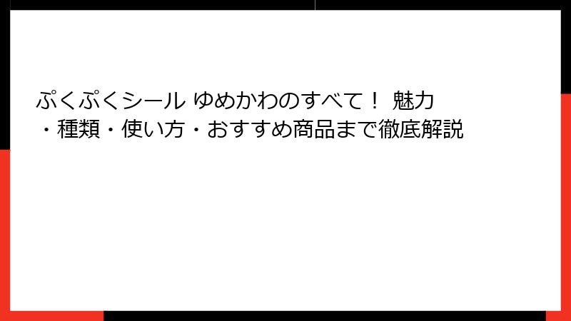 ぷくぷくシール ゆめかわのすべて! 魅力・種類・使い方・おすすめ商品まで徹底解説