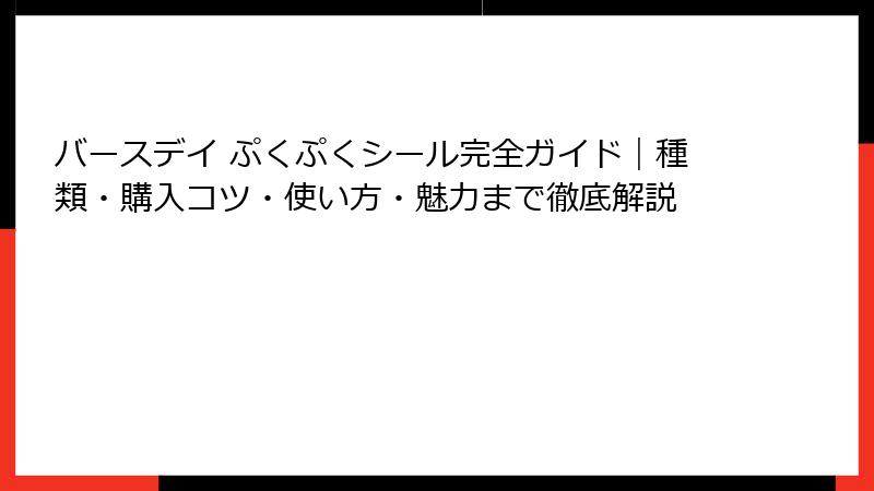 この基本概要を理解することで、バースデイ ぷくぷくシールがなぜ日常のアイテムとして定着しているのかがわかってくるでしょう。