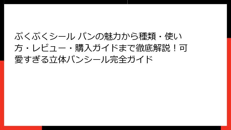 失敗しないコツを実践して、満足度の高いぷくぷくシール パンを手に入れましょう。
