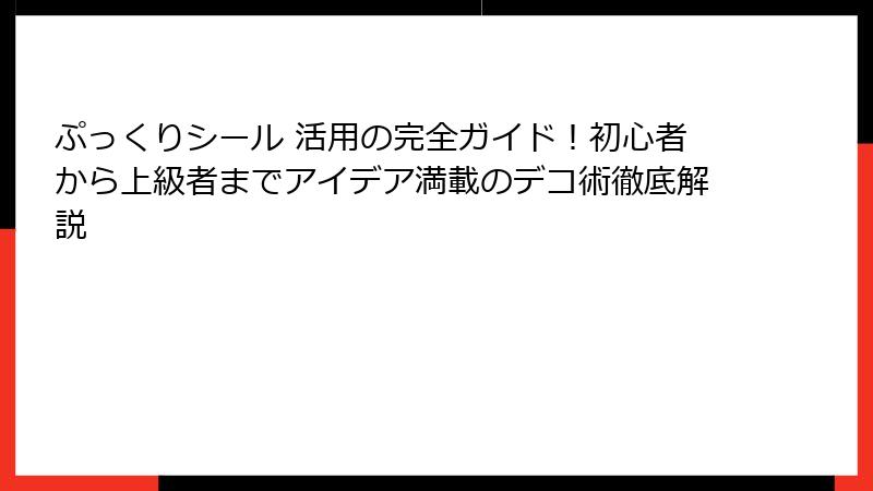 - まとめと上級Tips – ぷっくりシール活用の極意とおすすめ商品
