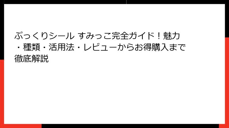 このガイドで、ぷっくりシール すみっこを今すぐ手に入れたくなるはずです。