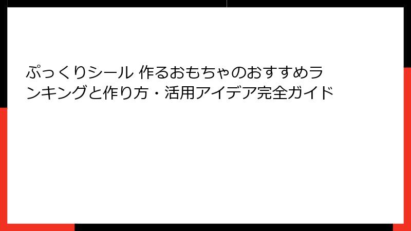 ぷっくりシール 作るおもちゃのおすすめランキングと作り方・活用アイデア完全ガイド