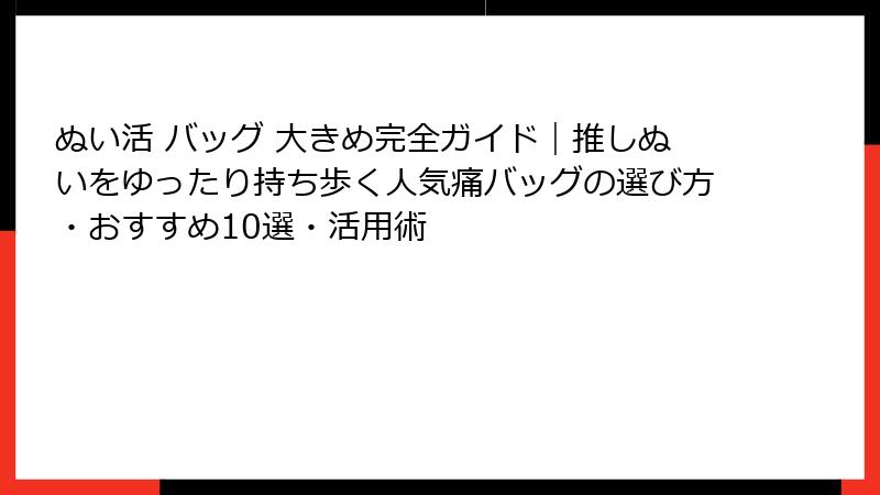 この記事では、そんなぬい活 バッグ 大きめの選び方からおすすめ商品、活用術までを詳しく掘り下げます。