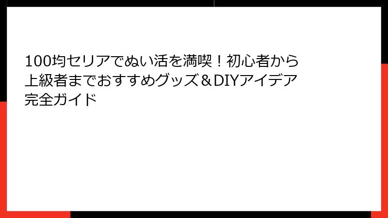 特に、セリアのような100均ショップは、手軽に始められるグッズが豊富で、初心者から上級者まで幅広く楽しめます。