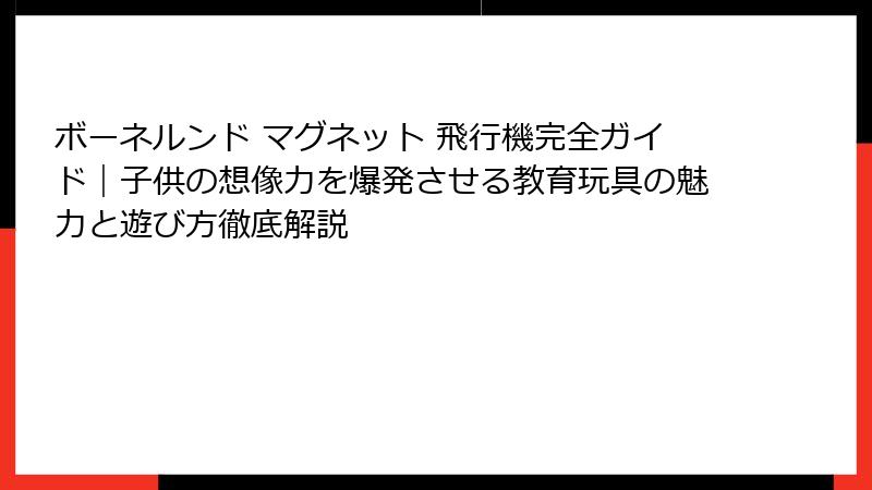 この記事では、ボーネルンド マグネット 飛行機の魅力に深く迫り、なぜこれが子供の想像力を刺激するのかを詳しく探っていきます。