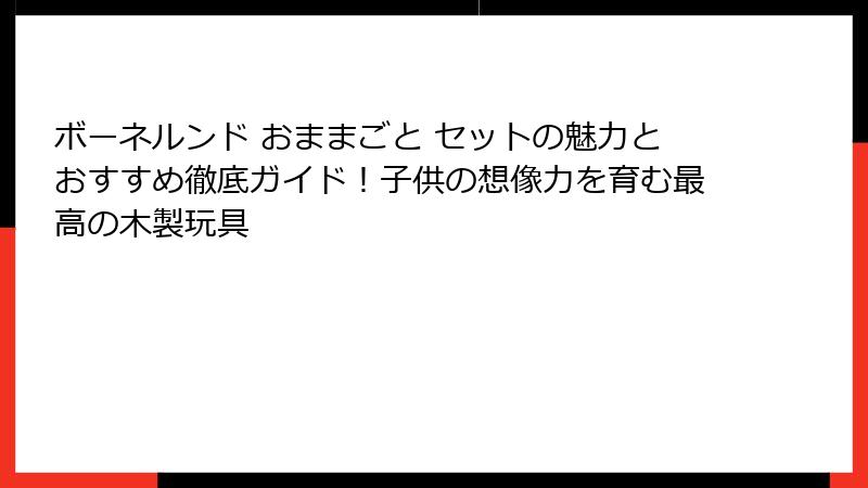 1. ボーネルンドのおままごとセットの魅力とは?子供の想像力を刺激する最高の遊び道具