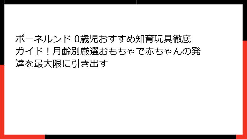ボーネルンド 0歳児おすすめ知育玩具徹底ガイド!月齢別厳選おもちゃで赤ちゃんの発達を最大限に引き出す