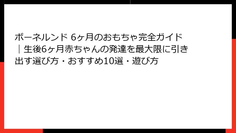 各ポイントを理解することで、ボーネルンド 6ヶ月のおもちゃ選びがより具体的にイメージできるはずです。