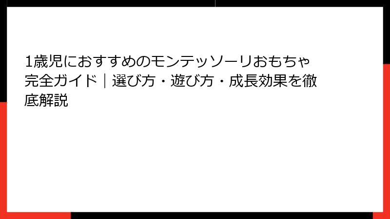 1歳児におすすめのモンテッソーリおもちゃ完全ガイド|選び方・遊び方・成長効果を徹底解説