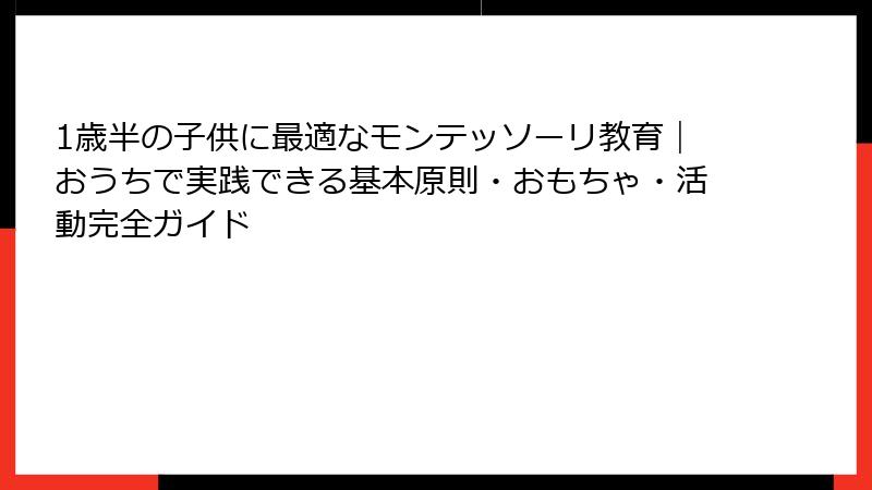 - 1歳半児向けモンテッソーリ教育の基本原則と家庭適用方法