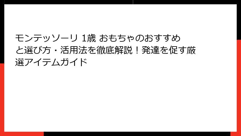 モンテッソーリ 1歳 おもちゃのおすすめと選び方・活用法を徹底解説!発達を促す厳選アイテムガイド