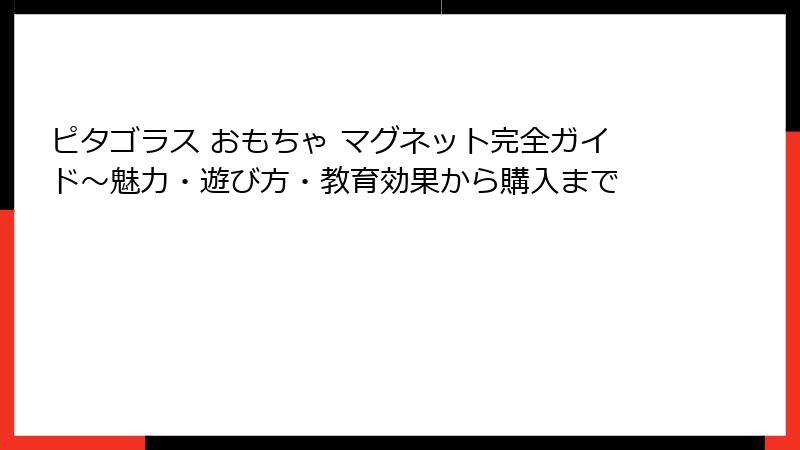 - ピタゴラス おもちゃ マグネットの魅力とは?子供の好奇心を刺激するロングセラー知育玩具
