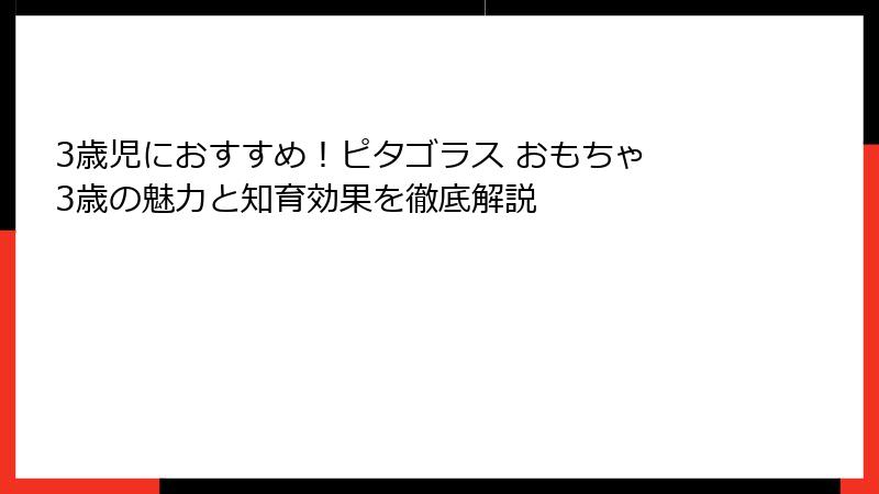 初回ガイドで、ピタゴラス おもちゃ 3歳の効果的スタート。