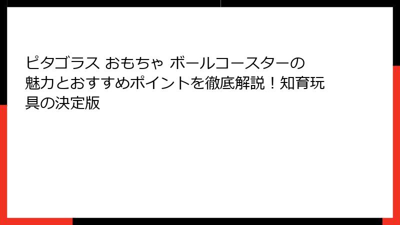 ピタゴラス おもちゃ ボールコースターのおすすめポイントを箇点でまとめ、最終アドバイスを。