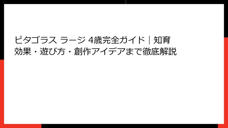 - 4歳児にピタゴラス ラージをおすすめする理由:知育効果と発達支援の科学的根拠