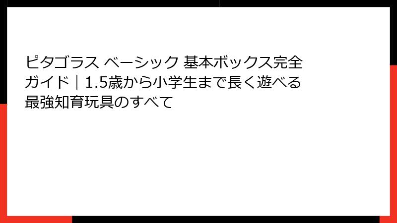 ピタゴラス ベーシック 基本ボックスは、そんなシリーズの基盤となるエントリーモデルとして、2010年代にリニューアルされ、現代の子どもたちのニーズに合わせたデザインが施されています。