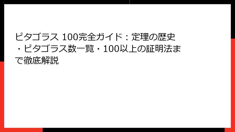 ピタゴラス 100とは? 数学の謎に迫る導入