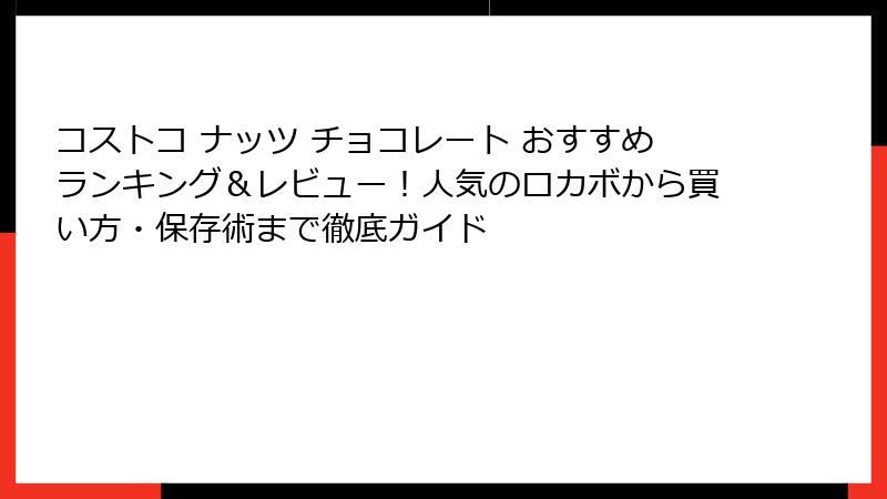 - コストコナッツチョコレートの賢い買い方と保存術! オンライン・店舗購入ガイド