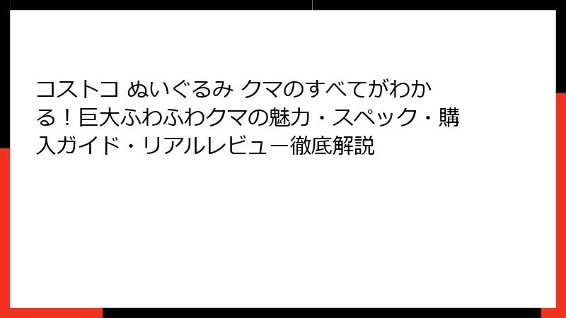 この概要を知るだけで、なぜコストコ ぬいぐるみ クマが家庭の定番アイテムとなっているのかがわかるでしょう。