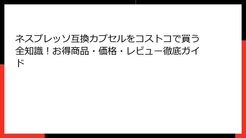 - ネスプレッソ互換カプセルをコストコで賢く購入!お得な選択肢を徹底解説