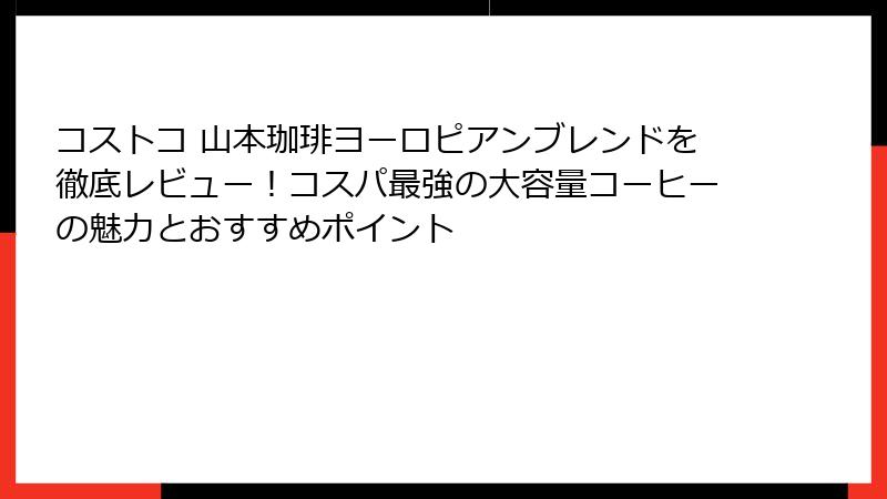 コストコ 山本珈琲ヨーロピアンブレンドを徹底レビュー!コスパ最強の大容量コーヒーの魅力とおすすめポイント