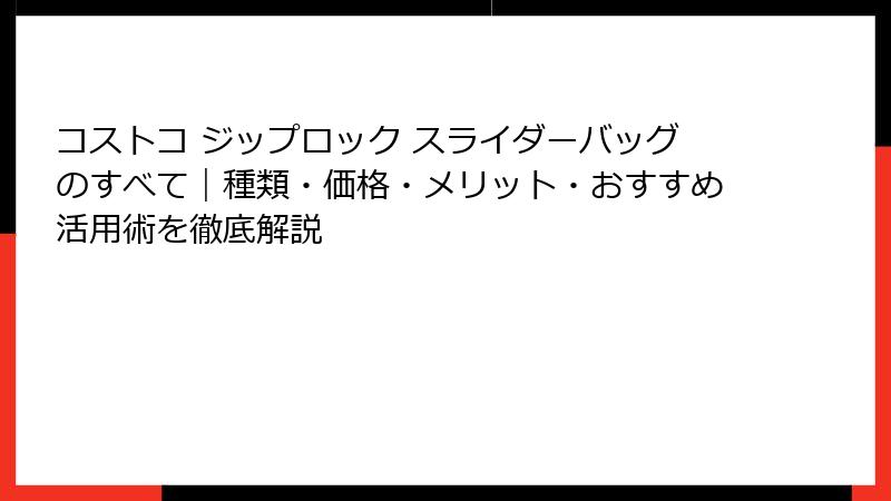 - コストコ ジップロック スライダーバッグの便利な使い方と活用術