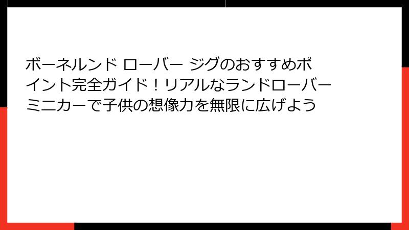 この記事では、ボーネルンド ローバー ジグの魅力について詳しく掘り下げていきますが、まずはその概要から始めましょう。