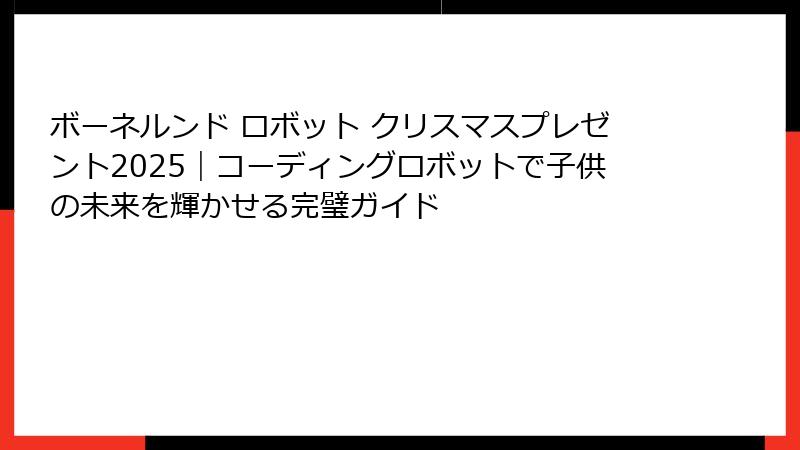 - クリスマスプレゼント選びのコツ!ボーネルンドロボットのおすすめ活用法と購入ガイド