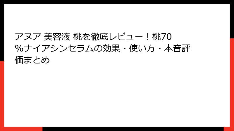皆さん、こんにちは! 美容好きの皆さんなら、最近SNSや美容雑誌で話題沸騰中の「アヌア 美容液 桃」というキーワードを耳にしたことがあるのではないでしょうか。