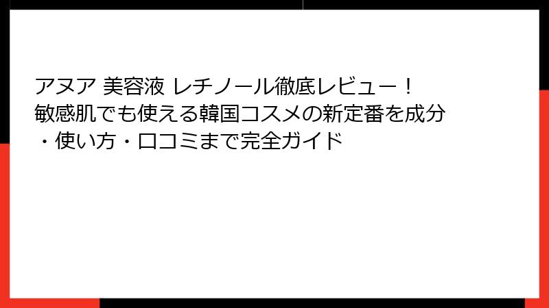 - アヌア 美容液 レチノールの魅力とは?韓国コスメの新定番を徹底紹介