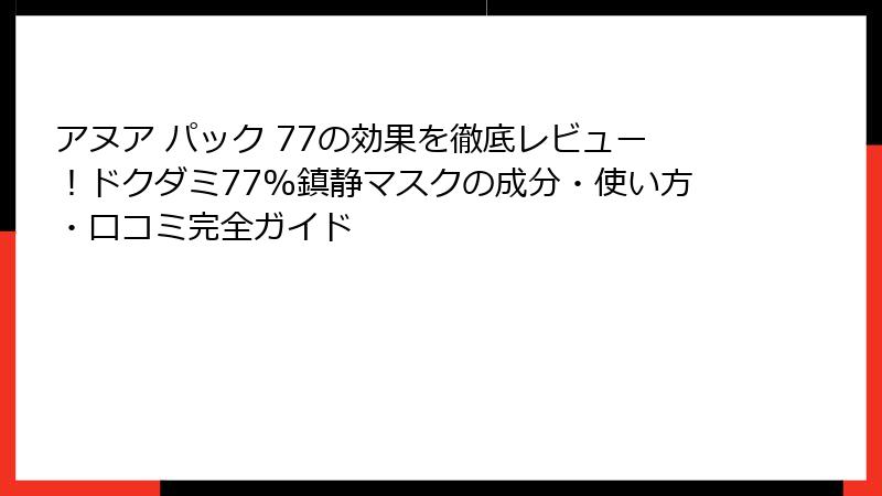 - アヌア パック 77の正しい使い方と活用Tipsで最大効果を引き出す